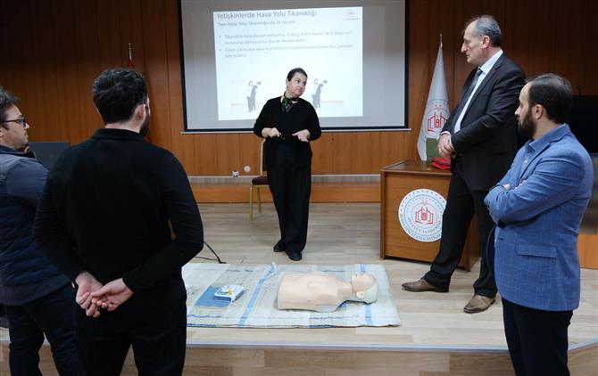 Bursa Dini Yüksek İhtisas Merkezi personeline, Bursa İl Sağlık Müdürlüğü Acil Sağlık Hizmetleri Şube Müdürlüğü tarafından İlk Yardım Eğitimi verildi.